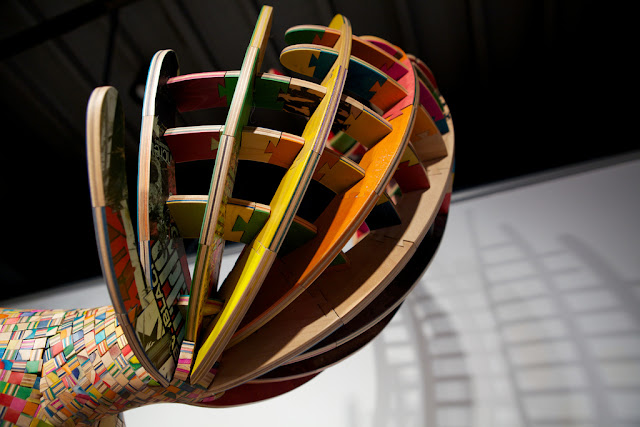 Usando como matéria-prima restos de skates, a artista plástica Haroshi, faz lindas, coloridas e inspiradas esculturas. To impressionada!